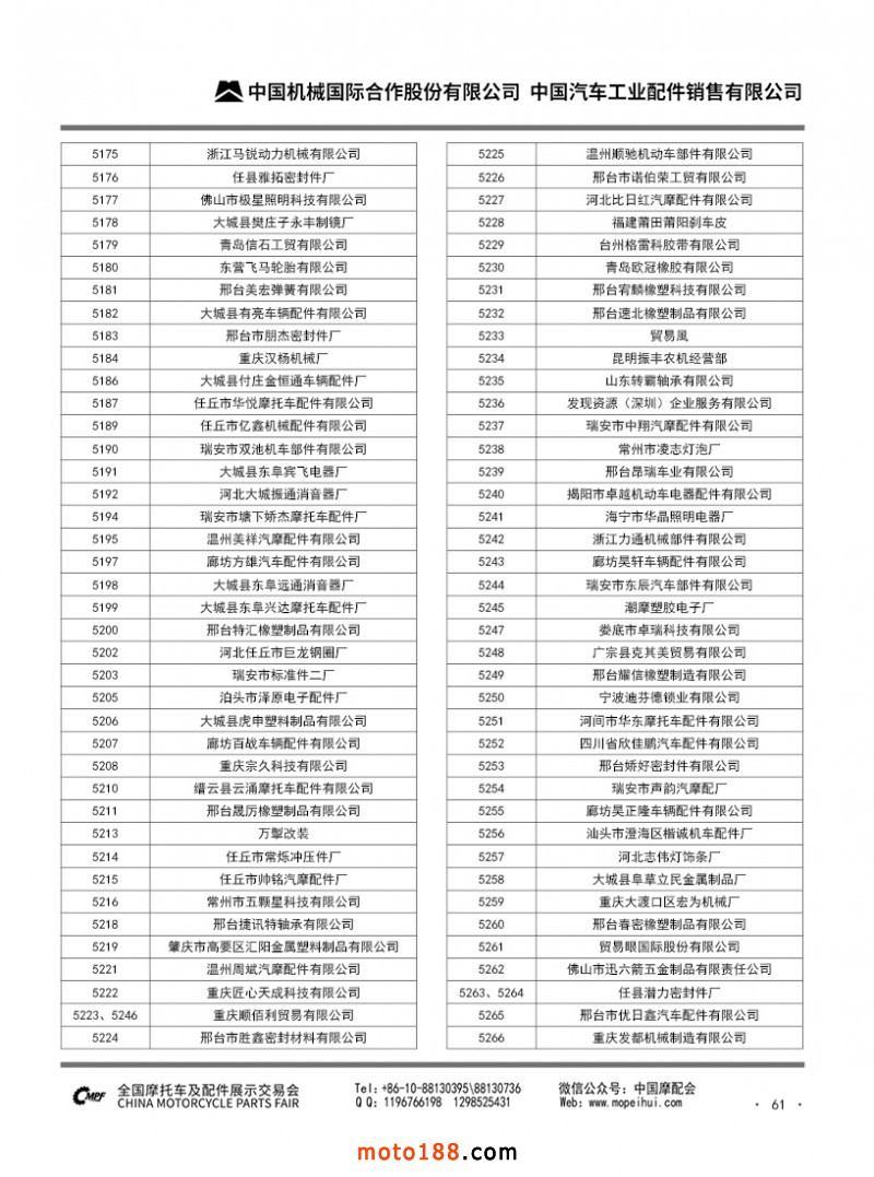 內(nèi)62 第89屆(2025春)全國(guó)摩托車及配件展示交易會(huì)-昆明站參展單位名錄