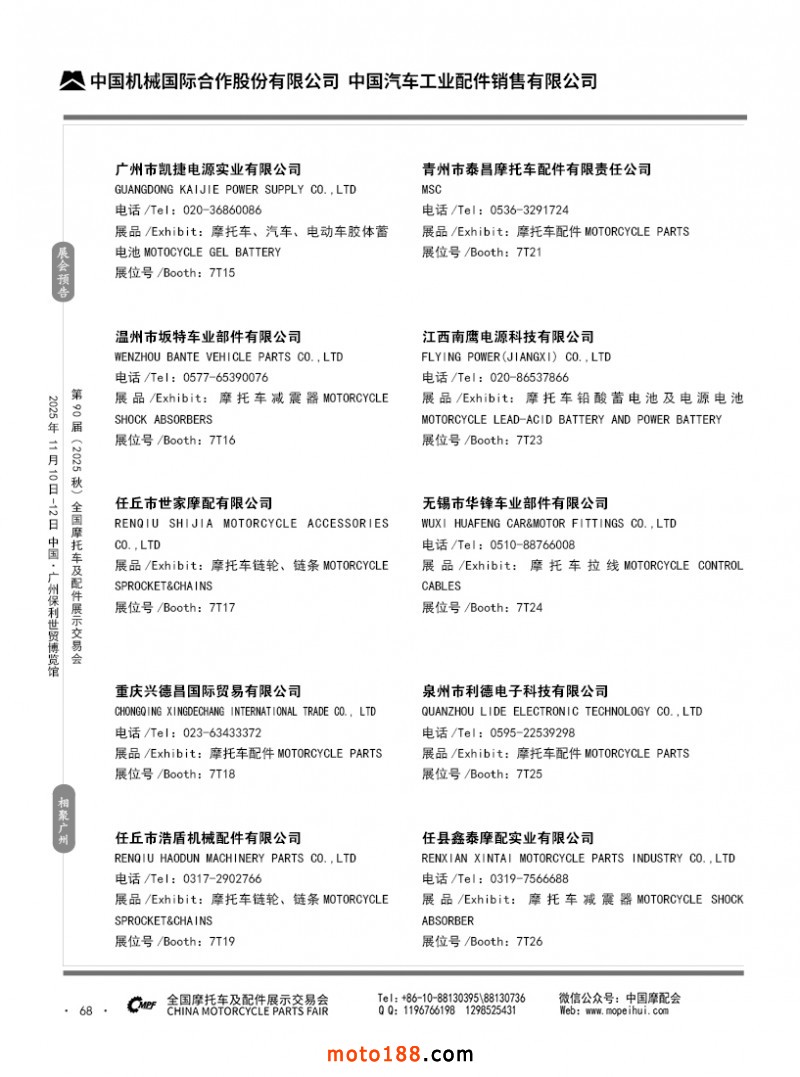 內(nèi)68 第89屆(2025春)全國摩托車及配件展示交易會-昆明站參展企業(yè)信息