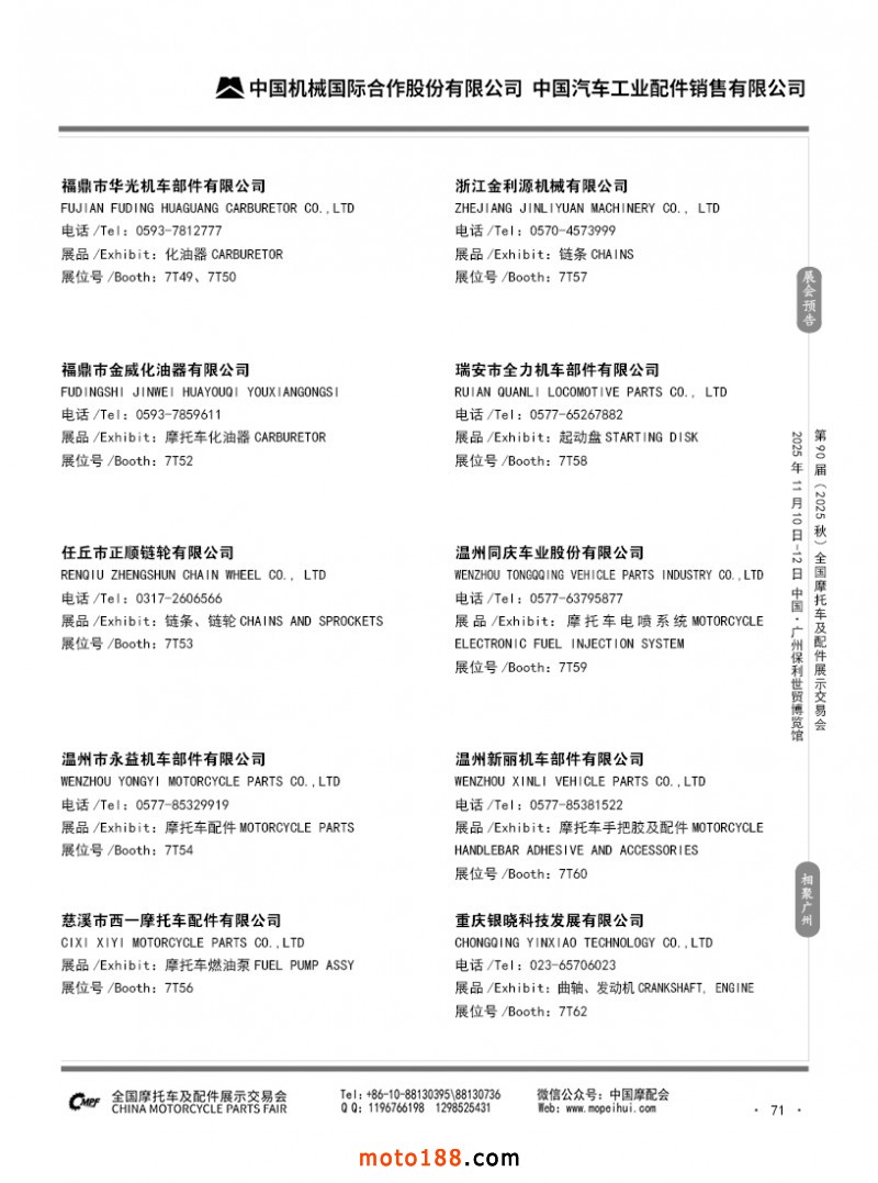 內71 第89屆(2025春)全國摩托車及配件展示交易會-昆明站參展企業(yè)信息