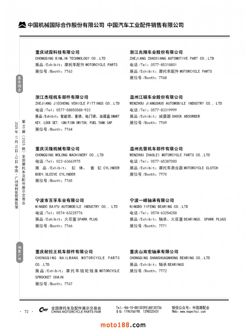內(nèi)72 第89屆(2025春)全國摩托車及配件展示交易會-昆明站參展企業(yè)信息
