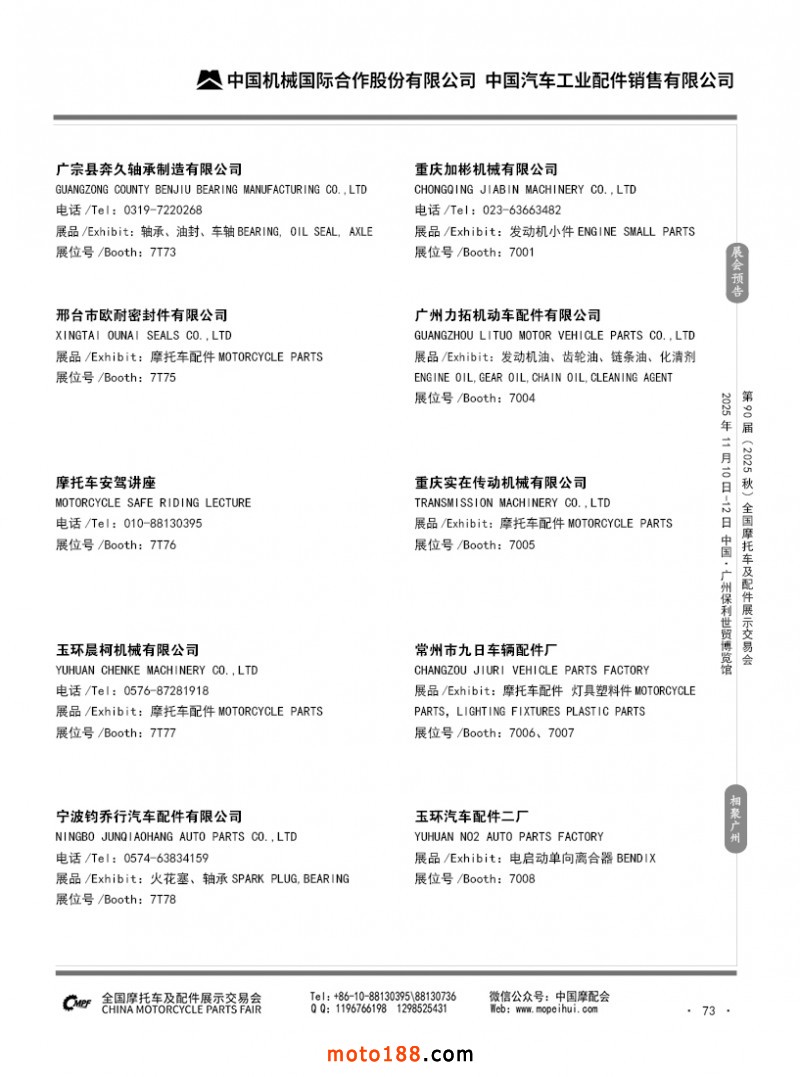 內(nèi)73 第89屆(2025春)全國摩托車及配件展示交易會-昆明站參展企業(yè)信息