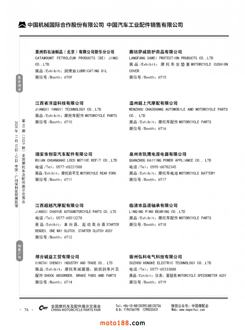 內(nèi)76 第89屆(2025春)全國摩托車及配件展示交易會(huì)-昆明站參展企業(yè)信息