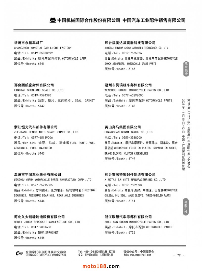 內(nèi)79 第89屆(2025春)全國摩托車及配件展示交易會(huì)-昆明站參展企業(yè)信息