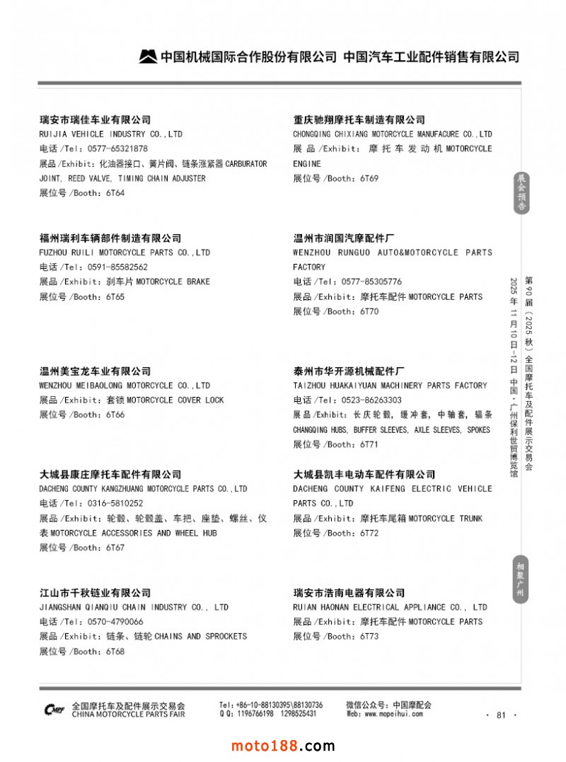 內(nèi)81 第89屆(2025春)全國(guó)摩托車及配件展示交易會(huì)-昆明站參展企業(yè)信息