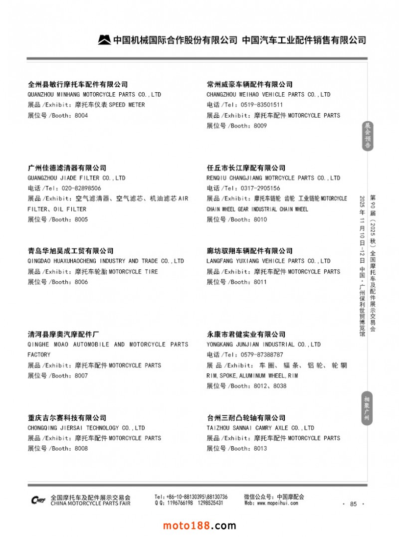 內(nèi)85 第89屆(2025春)全國摩托車及配件展示交易會-昆明站參展企業(yè)信息