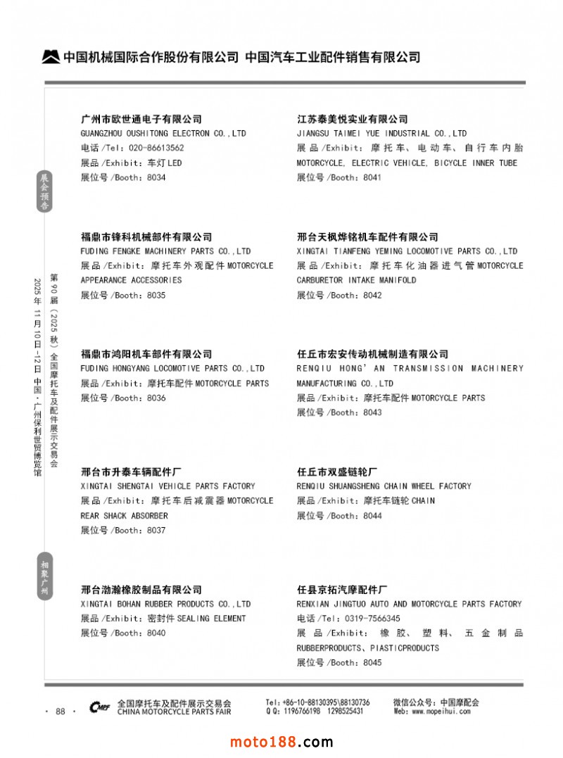 內(nèi)88 第89屆(2025春)全國(guó)摩托車及配件展示交易會(huì)-昆明站參展企業(yè)信息