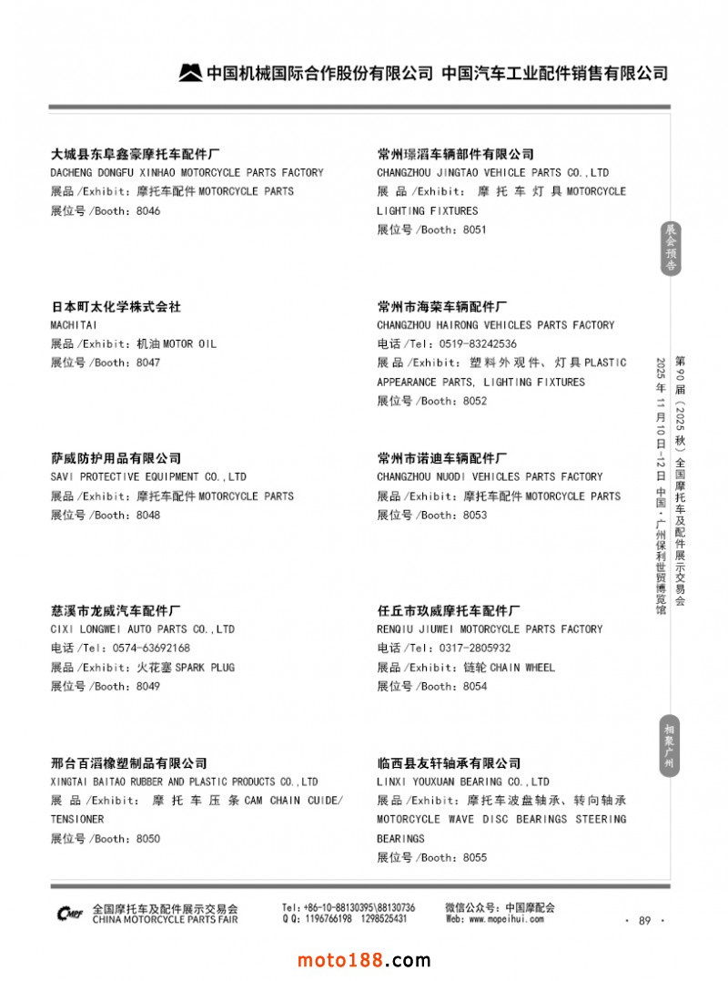 內(nèi)89 第89屆(2025春)全國摩托車及配件展示交易會-昆明站參展企業(yè)信息