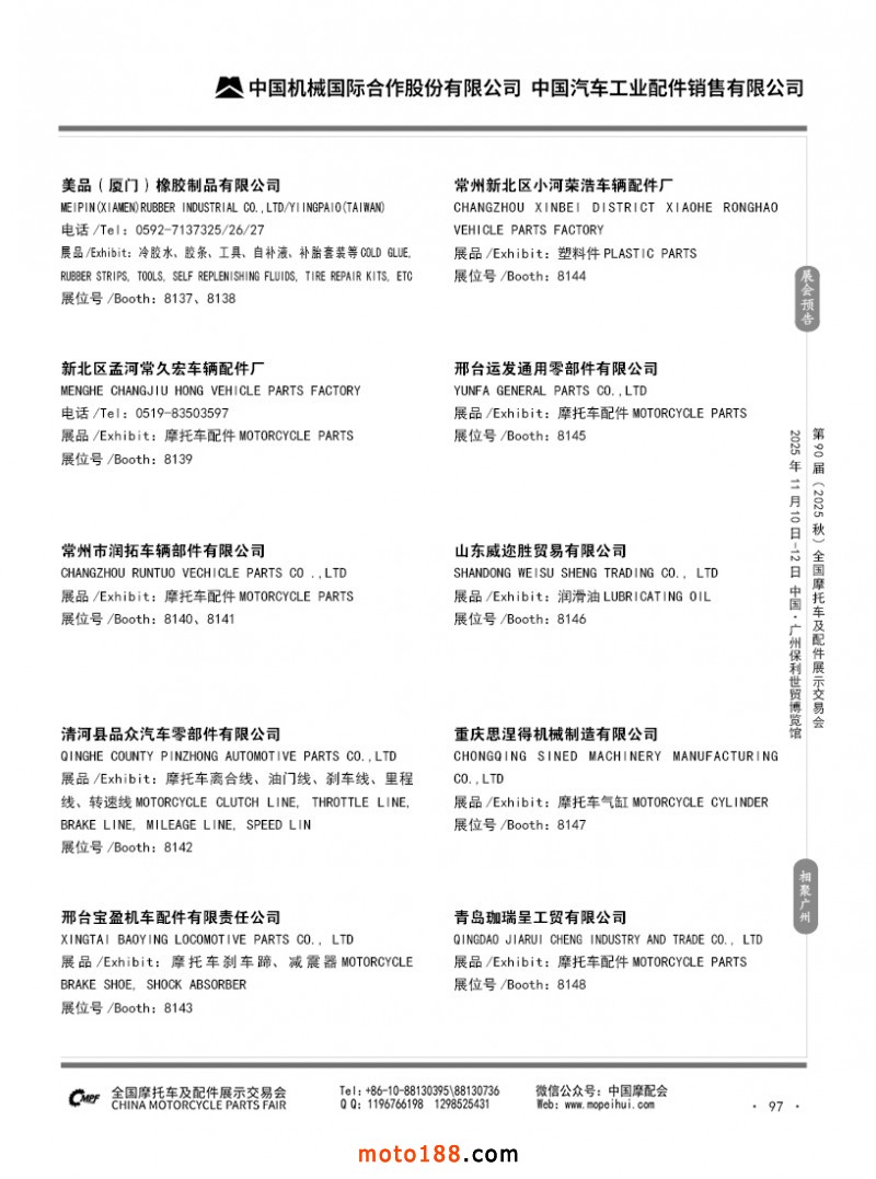 內(nèi)97 第89屆(2025春)全國(guó)摩托車及配件展示交易會(huì)-昆明站參展企業(yè)信息