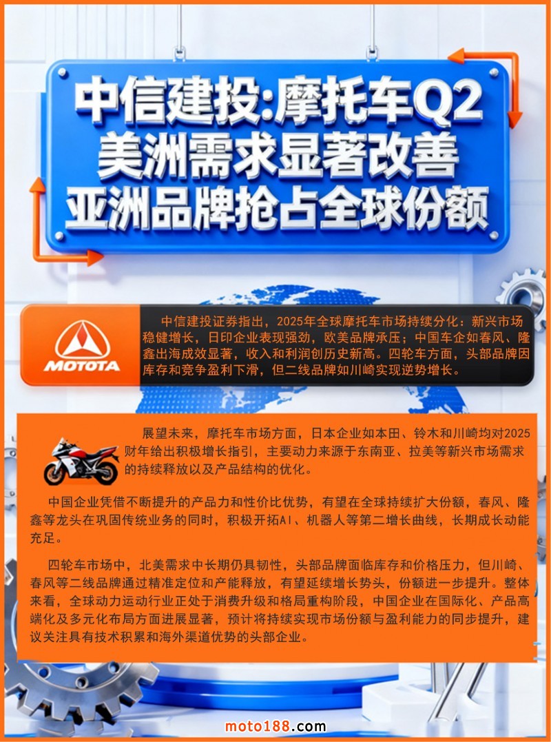 內(nèi)19 中信建投:摩托車Q2美洲需求顯著改善亞洲品牌搶占全球份額