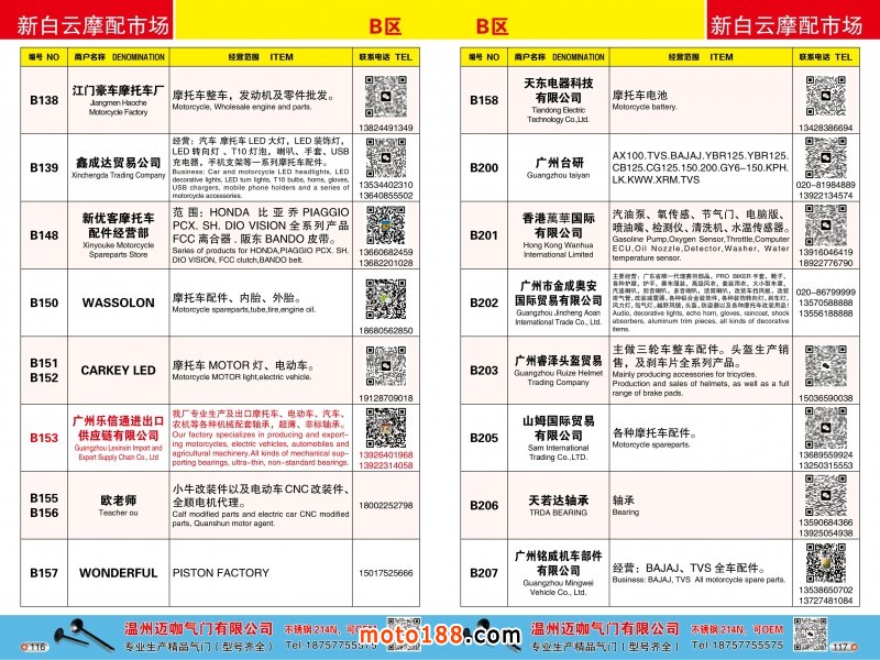 各摩配市場(chǎng)詳細(xì)資料請(qǐng)注冊(cè)我們的VIP會(huì)員咨詢 電話:0515-88436994 QQ:309362965、842467029、1051652573