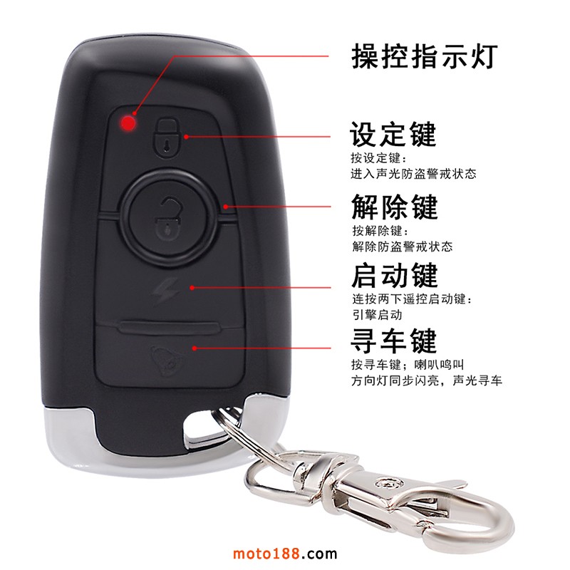 鐵將軍摩托車防盜器,支持無鑰匙啟動具有暖車、熄火、聲光防盜功能;