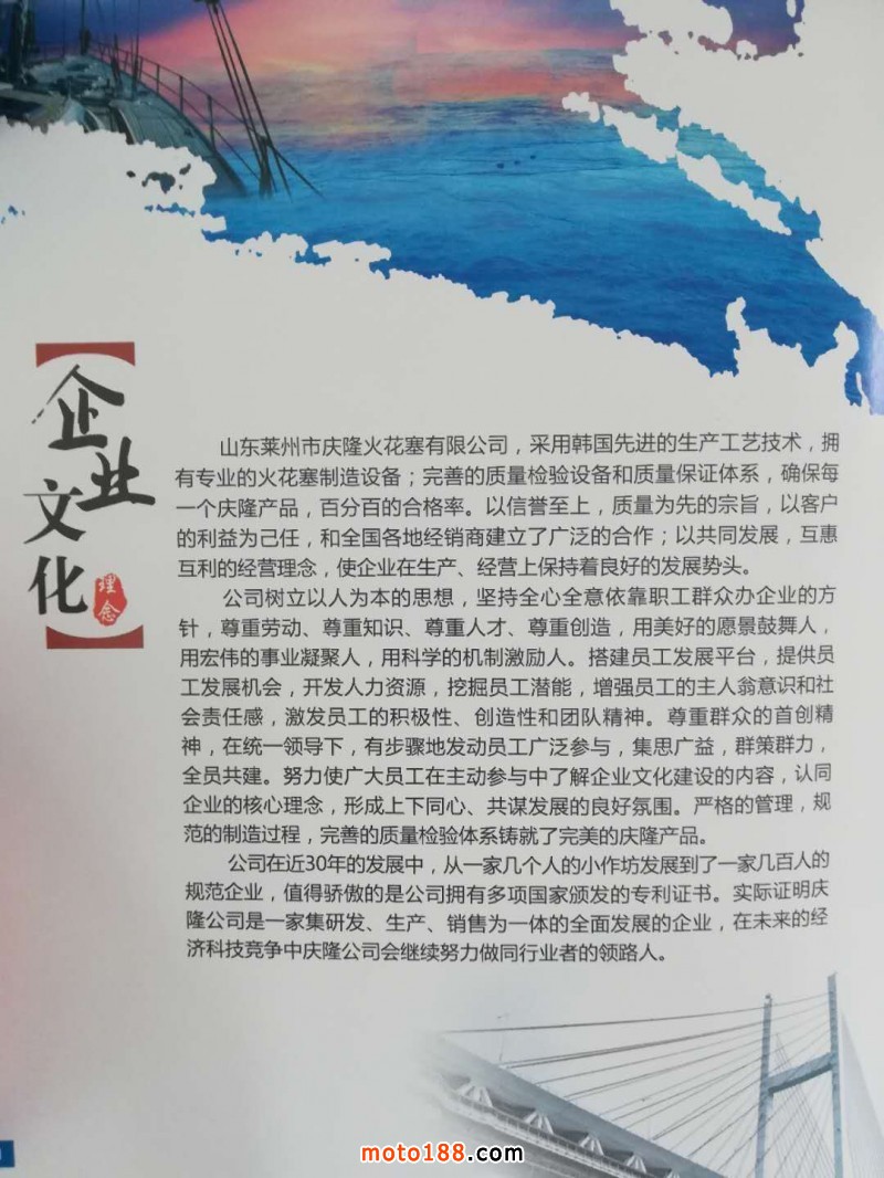 Shandong laizhou city celebrates the long spark plug co., LTD., specializing in the production of the spark plug, has a number of the patent certificate issued by the state, is a set research and development, production, sales as one of the all-round development of enterprises. Korea's advanced production technology, professional spark plug manufacturing equipment, to ensure the product 100% qualified rate. Add: yudong Street, Development Zone,Laizhou, Shandong ,China