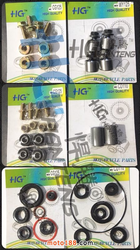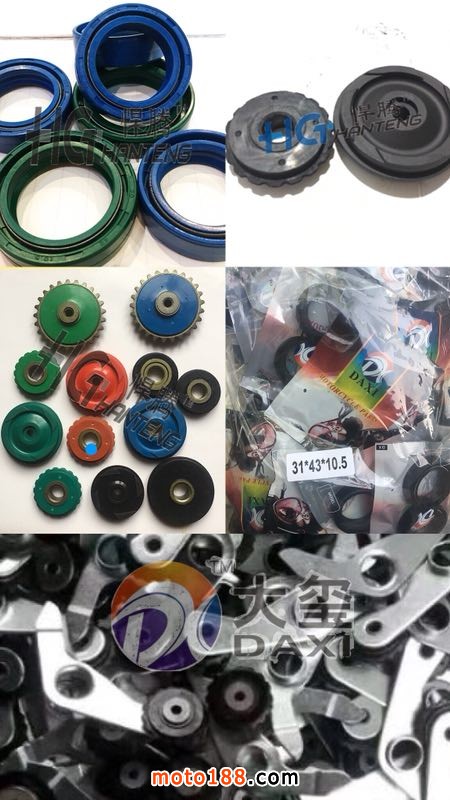 摩托車發(fā)動機(jī)零配件、密封件;三件輪、油封、前中后軸套、火花帽