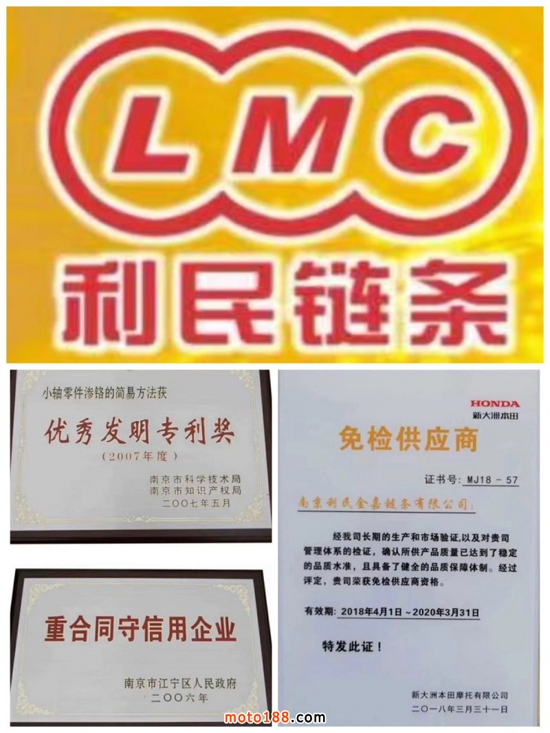 你想要的,都在LMC-南京利民鏈條。豪爵、鈴木、本田等一線品牌主要配套;本田系列二十年合作的認可;國內(nèi)首家采用德國進口51CrV4原材料,一個認真耕耘了四十年的民族品牌!??!南京利民鏈條,擁有,就會得到更多......