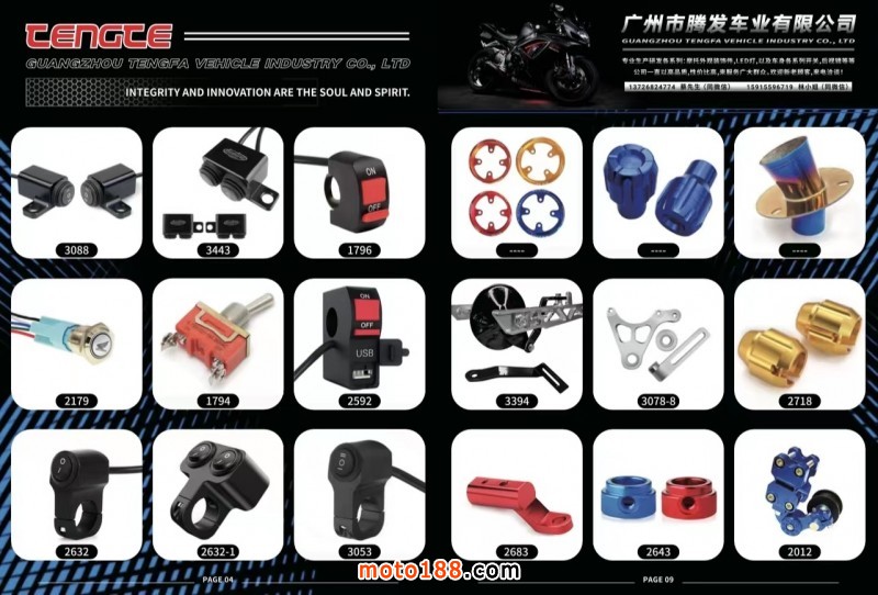 廣州市騰發(fā)車業(yè)有限公司,專業(yè)生產(chǎn)研發(fā)各系列:摩托外觀裝飾件,LED燈,以及車身各系列開(kāi)關(guān),后視鏡等等,公司一直以高品質(zhì),性價(jià)比高,來(lái)服務(wù)廣大群眾。歡迎新老顧客,來(lái)電洽談!