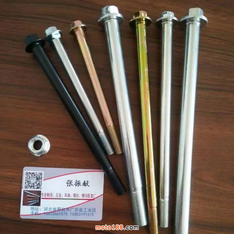 【河北小兒郎緊固件制造有限公司】專業(yè)生產(chǎn)摩托車(chē)前中后軸,以及零部件、小件、微標(biāo)。輪轂螺絲,異形件定做,歡迎來(lái)電咨詢!