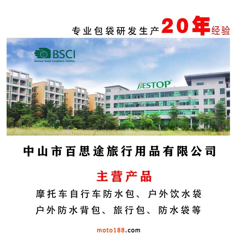 中山市百思途旅行用品有限公司,專業(yè)包袋研發(fā)生產(chǎn)20年經(jīng)驗,主營產(chǎn)品:摩托車自行車防水包、戶外飲水袋、戶外防水背包、旅行包、防水袋等,聯(lián)系電話:18476582442,周小姐