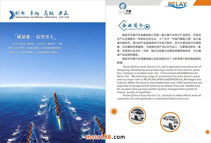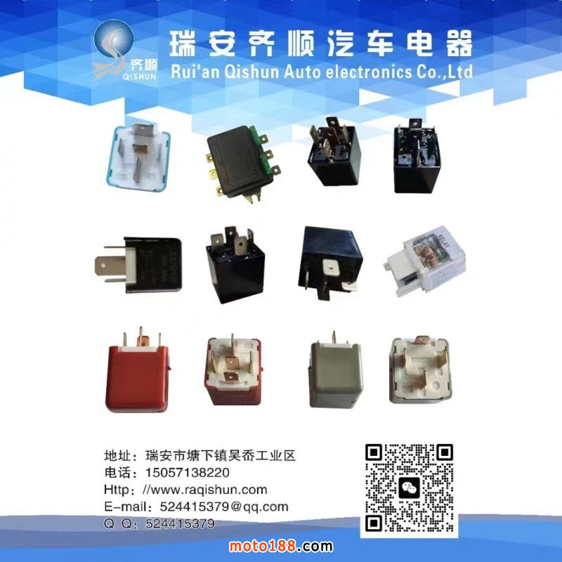 【瑞安齊順汽車電器】專業(yè)生產(chǎn)汽車繼電器、閃光器和傳感器等各種汽車電子配件。產(chǎn)品主要銷往歐洲、南美、東南亞以及中東!聯(lián)系人:韋經(jīng)理,手機:15057138220、15858859143