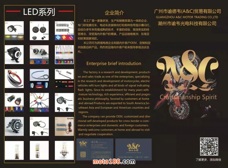 本工廠是一家集研發(fā),生產(chǎn)和銷售貿(mào)易為一體的企業(yè),專門研發(fā)摩托車、電動車改裝轉(zhuǎn)向燈和各種信號指示爆閃燈。自創(chuàng)辦多年來憑借成熟的技術(shù),豐富的經(jīng)驗,高效務實的經(jīng)營理念,深受海內(nèi)外客戶的青睞。產(chǎn)品遠銷南美洲,東南亞