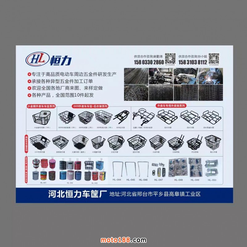 主要生產(chǎn)車(chē)筐,后貨架,外賣(mài)架,本廠有專(zhuān)業(yè)的研發(fā)團(tuán)隊(duì),從事新產(chǎn)品的開(kāi)發(fā)生產(chǎn),打樣!電話(huà)/微信: