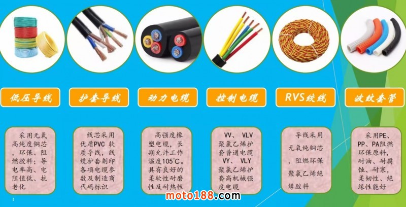 本公司專業(yè)生產(chǎn)電動兩輪、三輪、等新能源車輛配件;電線、電纜;各國AC、DC電源線;線束、波紋管等;擁有UL、VDE、CCC等各項認(rèn)證以及多項專利。源頭廠家、貨源充足;產(chǎn)品品類很多,并未一一列舉,可以來圖咨詢。聯(lián)系電話:18605141889(微信同號)
