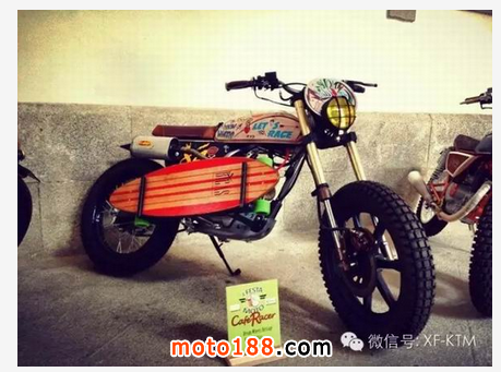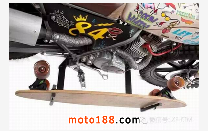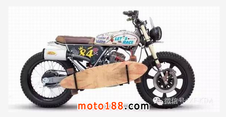 手工改裝廠Dream Wheels 幾年前開始著手改裝Honda CLR125 ,因為CLR125 成本低廉又有著可靠的引擎,非常適合穿梭在街頭,是一個非常好的改裝素材。而今天這臺CITYFLY原本只是臺pizza車 ,經(jīng)過Dream Wheels巧手,換上 RMX50前叉、復(fù)古手把與開關(guān)、復(fù)古圓燈、LED尾燈、XS400 18寸前鋁框 后面搭配鋼絲框、油箱彩繪、等.... 最后再加上那個畫龍點睛的滑板架,街頭復(fù)古風(fēng)一拜!