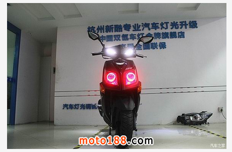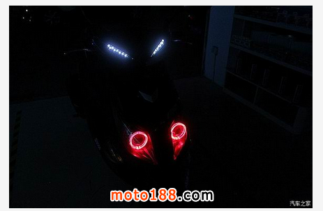 三陽(yáng) JetPower 俗稱三陽(yáng)小鋼炮,車(chē)前大燈有著鷹嘴的味道新增添的誘惑紅天使眼使得整個(gè)大燈更加完美、新穎、獨(dú)特在夜行時(shí)顏值暴漲,魅力四射改裝后的小鋼炮放大了瞳孔更適合在夜間狂野飆車(chē),燈光鋪路效果非常棒