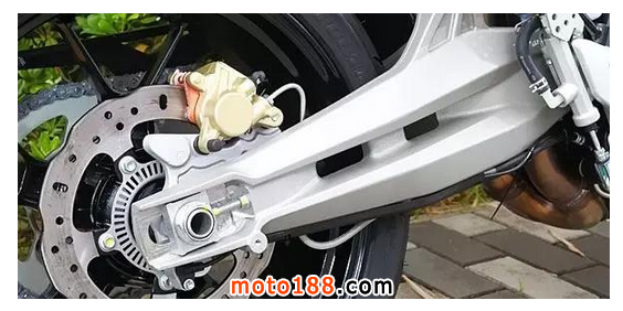 后搖臂需要承受強(qiáng)大的動力輸出,起步時發(fā)動機(jī)扭力帶來向前的驅(qū)動力。