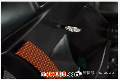 加滿油才195公斤,理想條件下最高車速能超過320km/h。為此,PUIG的風(fēng)擋還專門放在風(fēng)洞里吹過,絕非路邊攤隨便揀來的。所謂理想條件包括把頭埋在風(fēng)擋的后面,這個(gè)位置要看到后視鏡可是無比艱難,Warm Up于是在油箱上設(shè)了一片WAECO顯示器——用攝像頭取代后視鏡還能進(jìn)一步降低風(fēng)阻。類似的小心眼還包括Kellermann的Micro 1000 DF后燈組,不亮的時(shí)候幾乎注意不到它的存在。頭燈倒很容易引起注意,遠(yuǎn)近光現(xiàn)在換成氙氣獨(dú)眼,下面還墊了一排LED日間燈,非常明亮。