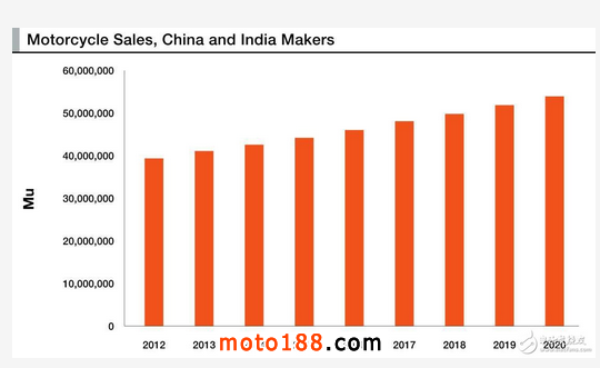 圖1. 中國(guó)和印度雙輪機(jī)車增長(zhǎng)趨勢(shì) – 按生產(chǎn)商統(tǒng)計(jì) [6]。