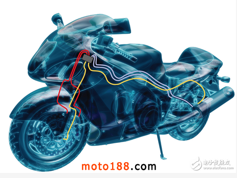 在ABS制動(dòng)系統(tǒng)中,用輪速傳感器或音輪測(cè)量機(jī)車駕駛速度。ABS電子控制單元(ECU)中的微控制器(MCU)利用這些測(cè)量結(jié)果判斷車輛是否將停轉(zhuǎn)。這種情況發(fā)生時(shí),MCU向ECU中的集成電路(IC)發(fā)出模擬混合信號(hào)(AMS) ,驅(qū)動(dòng)液壓閥并調(diào)整制動(dòng)缸對(duì)踏板的壓力。這種制動(dòng)可每秒發(fā)生幾次。圖3顯示了這些制動(dòng)單元在摩托車上的位置。