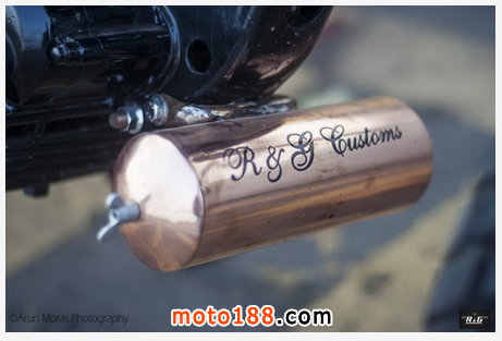 來(lái)自印度孟買(mǎi)的定制公司 R & G 作品 Rising Angel “ 天使瑞星 ”,以一部當(dāng)?shù)厣a(chǎn)的 Yamaha FZ16 為基礎(chǔ)制作而成,但除了發(fā)動(dòng)機(jī)沒(méi)有重大的變化之外,車(chē)體的各個(gè)部分皆已經(jīng) “ 面目全非 ”:采用了一個(gè) “ 咖啡 ” 的外觀整體造型,梁架式的前懸掛,配有指南針的油箱蓋,19 英寸直徑的鋼線前輪框。尤其耀眼的是全車(chē)多處采用了黃銅為主材料、經(jīng)過(guò)精加工而成的組件,制造出一種金壁輝煌的感覺(jué),或許這就是我們對(duì)印度社會(huì)崇尚某些貴金屬的傳統(tǒng)印象罷了。