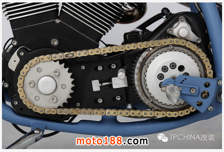 ZT搭載的V型大雙缸和6速齒輪箱都來自于Ultima,發(fā)動機排氣量超過2000cc,能夠輸出雄渾滂沛的扭矩;二合一排氣系統(tǒng)則由野性工坊自制,由兩條锃亮的排氣管交叉成Y型,顯得精致優(yōu)雅。