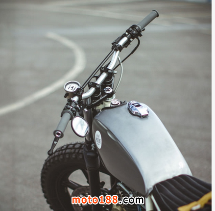 如果說(shuō)在摩托車中有像是大眾甲殼蟲(chóng)一樣(便宜,結(jié)構(gòu)簡(jiǎn)單,又造型吸引人)經(jīng)典的車型,那Yamaha SR系列排第二,絕對(duì)沒(méi)人敢排第一。正因?yàn)槿绱?,SR400和SR500車系是改裝復(fù)古車型用的最多的車款,數(shù)不清的改裝案例讓人已經(jīng)有點(diǎn)審美疲勞,不過(guò)這件來(lái)自瑞典的改裝工作室6/5/4 Motors的作品卻讓我們眼前一亮。