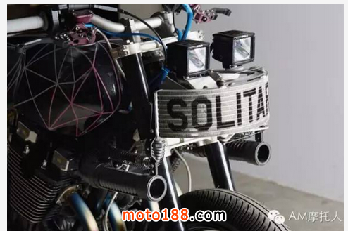 外觀涂裝方面,也一如既往的延續(xù)了El Solitario鬼馬的設計理念,來自倫敦Death Spray Custom幫忙打造了充滿未來感和立體感的不規(guī)則幾何線條的涂裝。使得整體的設計更具侵略性,果然是車如其名。