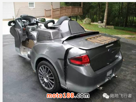 這臺合體混種三輪,最初是在eBay拍賣網(wǎng)站出現(xiàn),由一名叫geek_jon的網(wǎng)友貼出,這輛怪車前半部是本田金翼的重型機車,后半部則是福特??怂罐I車,通過特殊土炮焊接大法連接而成,轉(zhuǎn)向部分由重型機車龍頭進行操控,動力就由后半部Focus引擎負責輸出,成為單輪轉(zhuǎn)向、后輪驅(qū)動的三輪車設計,相當不可思議。