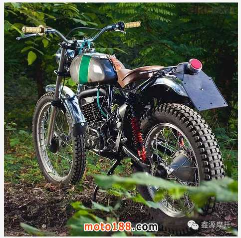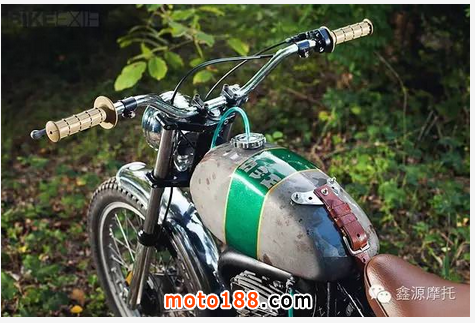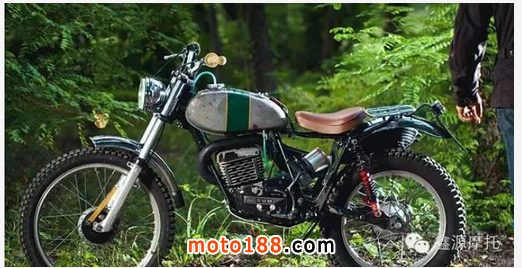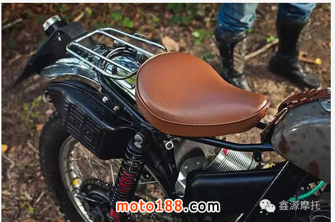 改裝方向上遵循了原車的越野風格,為追求簡單質(zhì)樸的味道,找到了現(xiàn)代仿制的鼓剎輪轂和前叉,借鑒自老式機車的單人座和源自自行車的小貨架,平添了幾分親切的感覺。
