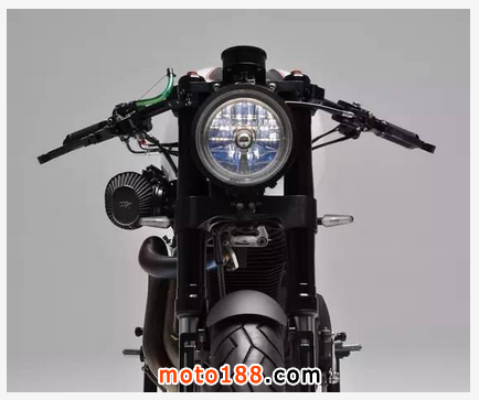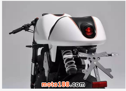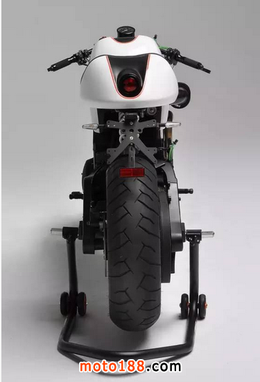 這是一輛2008年的Buell XB12SS,改裝Cafe Racer風格,整體顏色采用黑白配,顯得十分干凈。由于布爾摩托車的短軸距設計,這輛改裝的Cafe Racer看起來有些怪異,個人感覺風格有點像國內(nèi)的小牛電動車。不僅外觀上有變化,重新調(diào)校了ECU是,功率提升了10匹,而改裝又讓這款車減重了20kg,性能方面也發(fā)到了提升。而一些細節(jié)同樣保持了整車“干凈”的改裝風格,比如運用了無鑰匙啟動。