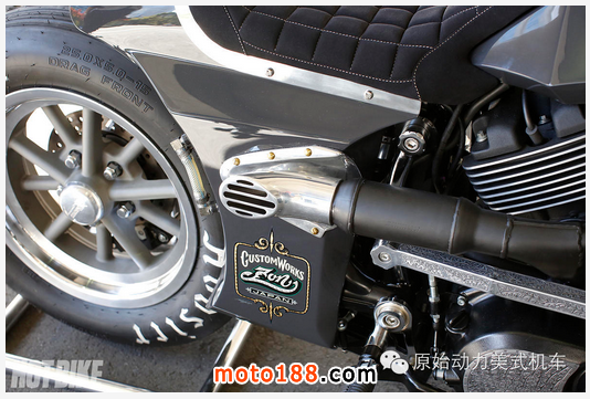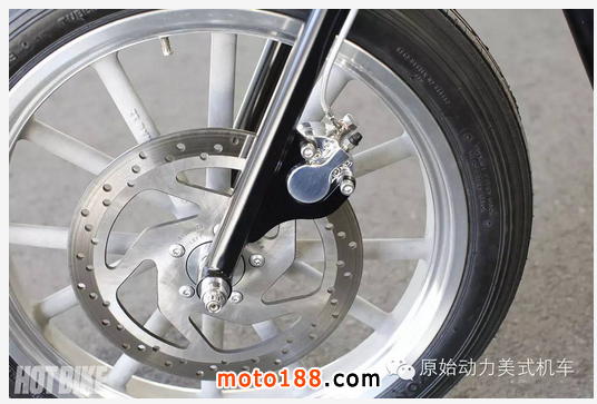 ▲前輪為W&W Cal Mag Replica 19"輪轂,搭配固鉑輪胎。車把為Custom Works Zon定制。