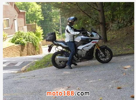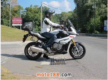 身高162cm的女騎士Laura,駕馭一臺BMW S 1000 XR大型多功能摩托車(座高84cm左右),我們可以看到圖片中的Laura雙腳都不能完全接觸到地面。但這并不妨礙她駕馭這臺BMW S 1000 XR。她是如何做到的呢?