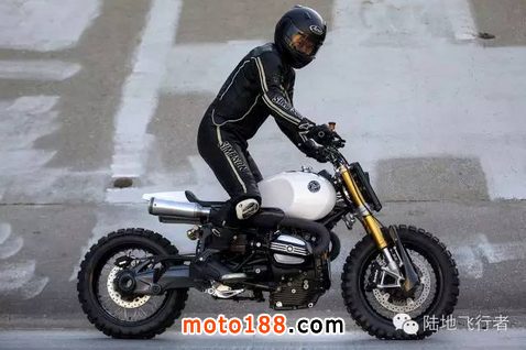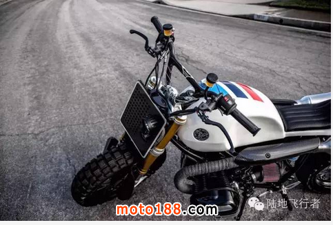 這次改裝依然保持了該車復(fù)古的氣質(zhì),但融入了BMW 90年來所有的經(jīng)典元素與尖端科技。改造后的“chocolate slider”無論公路還是越野性能都得到了進一步提升,同時為了能夠更好阻擋濺起的石塊、泥巴還有積水等,設(shè)計團隊調(diào)整了排氣管的位置,讓它高過氣門室罩蓋。但也因為這樣的設(shè)計使排氣管處在比較靠近騎手腿部的位置,所以設(shè)計師將管道的材料改成了可以降低溫度的碳纖維。