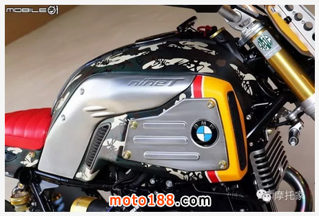 ‘拳魂不滅’中文字樣與底下的英文‘BOXERMOTOR NEVER DIE’是這臺(tái)車的主題,R-nineT 采用水平對(duì)臥空油冷引擎又被稱為拳擊手引擎,所以這臺(tái)車除了是一種 BMW 特有引擎的精神傳遞外,透過這串主題向 BMW 經(jīng)典引擎致敬。