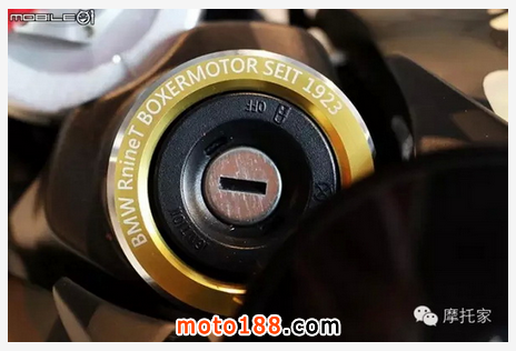 鎖頭外圈也特別設(shè)計(jì)一組鋁合金裝飾環(huán),上方也有 BMW RnineT BOXERMOTOR SEIT 1923,意思是 BMW 的水平對(duì)臥引擎始于西元 1923 年。