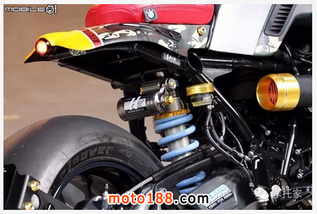 后避震采用 GEARS 集亞避震器的 H2+ 系列避震器,目前據(jù)了解全世界僅六支,這次參加 2016 臺(tái)北新車大展 BMW Motorrad 展區(qū)中的兩臺(tái)手工改裝車就用掉兩支,因此能在這邊看到這支避震器也算是蠻值得的。
