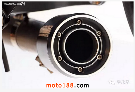排氣管出口也以六角螺絲點(diǎn)綴,讓排氣管不會(huì)只有圓型出口這么單調(diào),兩缸共享此單一出口,并且因?yàn)闆]有消音塞設(shè)計(jì),所以排氣時(shí)的聲浪真的讓人為之震撼,不過雖說如此,這部分也可以恢復(fù)成原廠排氣管。