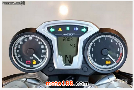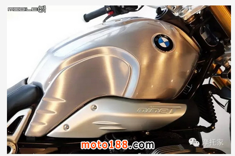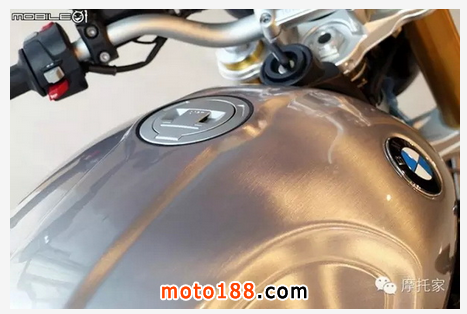做為選配的發(fā)絲紋油箱烤漆是這次最大的賣點(diǎn),而且發(fā)絲紋還具有兩種版本可供選配,不過這次只有拍到一種版本,稍微有些可惜;底下的 nineT 也是這款車最好識(shí)別的特征之一。