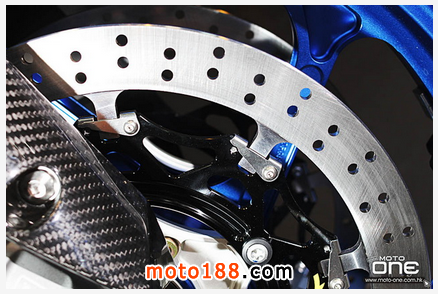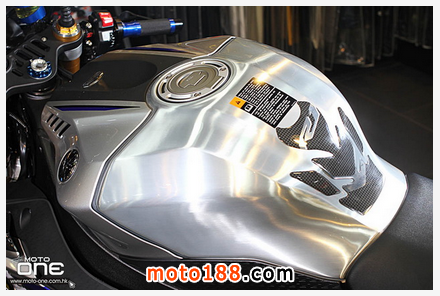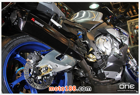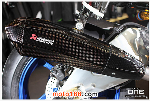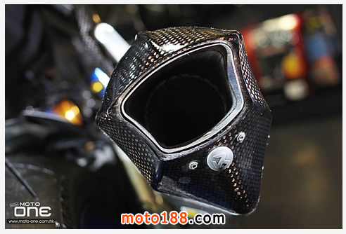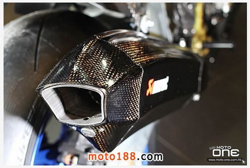 當然,此YAMAHA YZF-R1M配上AKRAPOVIC YZF-R1 蝎子evolution全梳鈦合金+碳纖維尾段排氣管,采用六角型蝎子款式的排氣管,外觀非常特別,全梳金屬部分采用優(yōu)質(zhì)輕量的鈦合金,尾段側(cè)用碳纖維制造。據(jù)廠方資料,較R1/R1M原廠排氣管輕5.2Kg公斤,馬力輸出提升3.6hp,不論外觀及性能也有所強化。