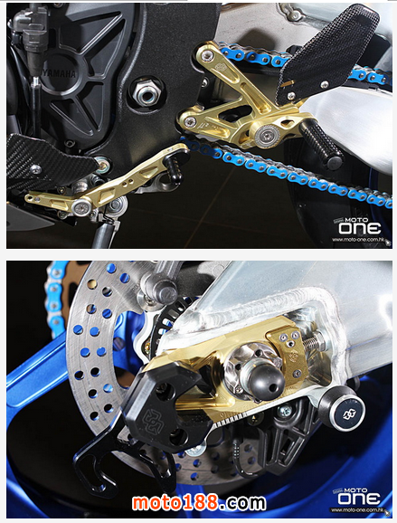 這次的YAMAHA YZF-R1M主要改裝為GALESPEED TYPE-GP1S鍛造鋁合金輪框(YAMAHA R1M CUSTOM COLOUR ORDER)、GALESPEED 多段式調(diào)校鍛造煞車手泵及離合器桿、GALESPEED 無介子式新款浮動剎車碟、gilles tooling賽車腳踏、尾鏈調(diào)教花籃+尾擔PK膠、上眼鏡絲母(超輕鋁合金制、特有保險螺絲防止松脫)、引擎保護膠、前軸PK膠、牛角保護膠、BREMBO GP4RX鍛造鉲鉗、OHLINS軚把、YAMAHA R1原廠改裝補品車身保護架、賽車風(fēng)鏡、RIZOMA 手油筒、油壸、ACTIVE尾牌架及碳纖維紋油缸防花保護貼等等......