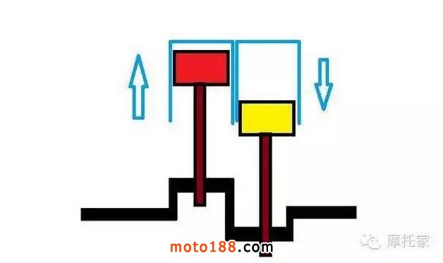 接下來是異步雙缸了 首先 異步雙缸的特點 就是曲軸正好錯開180度,異步機依靠曲軸對置180度造成兩氣缸相反方向運動 ,氣缸相反方向運動時可以抵消氣缸的相對運動造成的慣性 禳發(fā)動機工作更加平穩(wěn),自然提速方面有一定優(yōu)勢。
