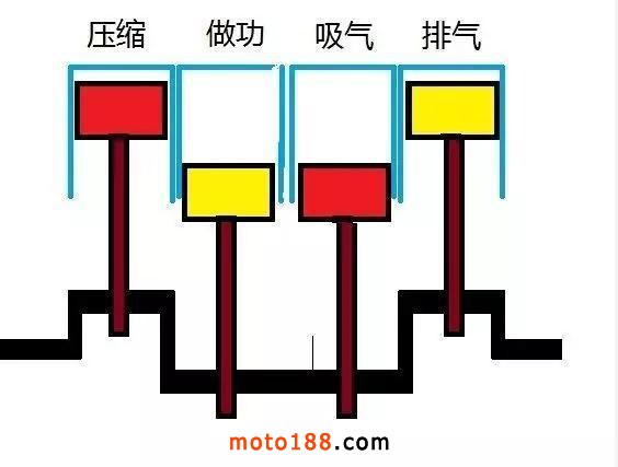 送并列四缸車一般氣缸布局 每個沖程 都會有一個氣缸在點火